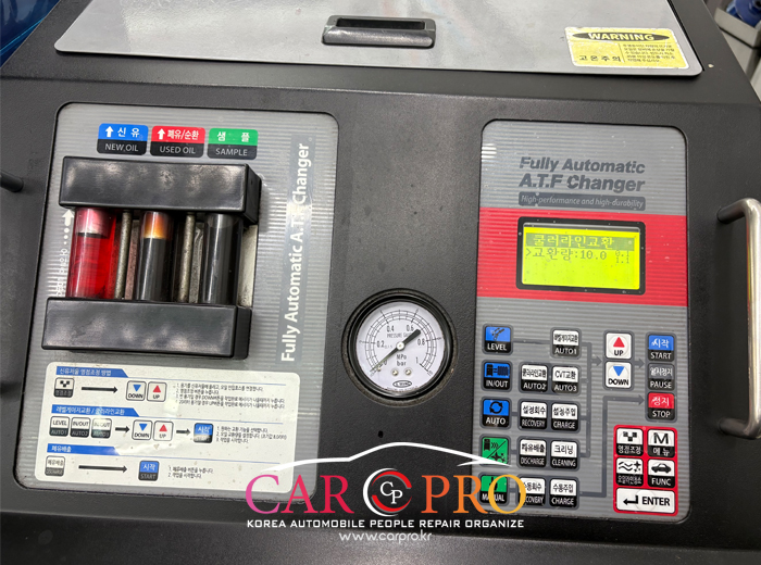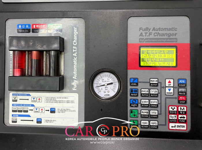 10리터 장비순환식으로 교환 후 가운데 순한되는 미션오일 깔끔하게 교환되었네요~