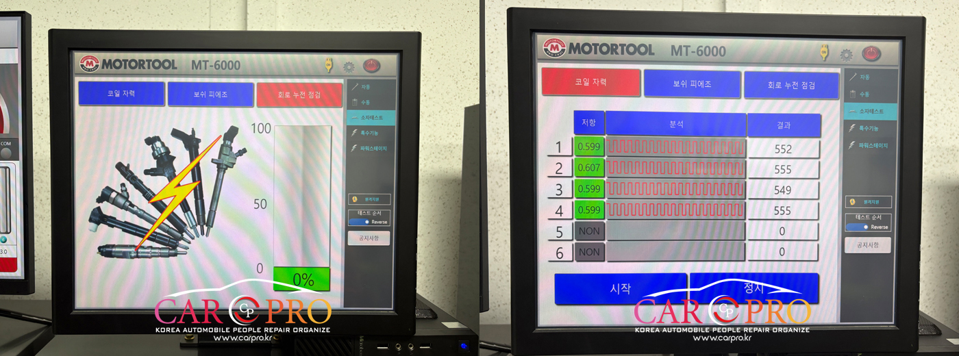 인젝터 크리닝 해주고 단계별분사량 테스트까지 해줍니다