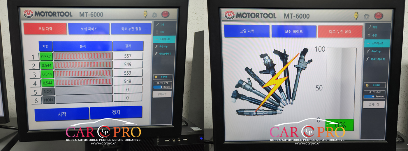 인젝터 크리닝 후 단계별 분사량 테스트를 해줍니다