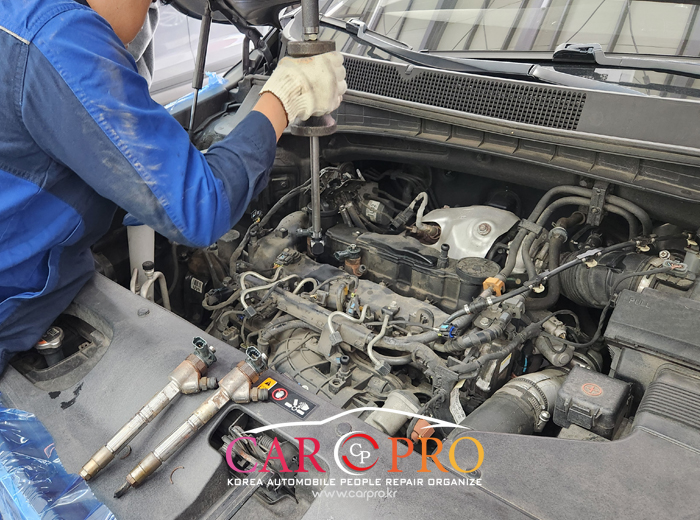 인젝터 고착으로 탈거가 되질 않아서 특수공구를 이용하여 탈거해줍니다