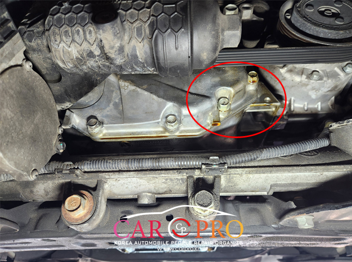 타이밍프론트 케이스에서 엔진오일 누유가 있네요