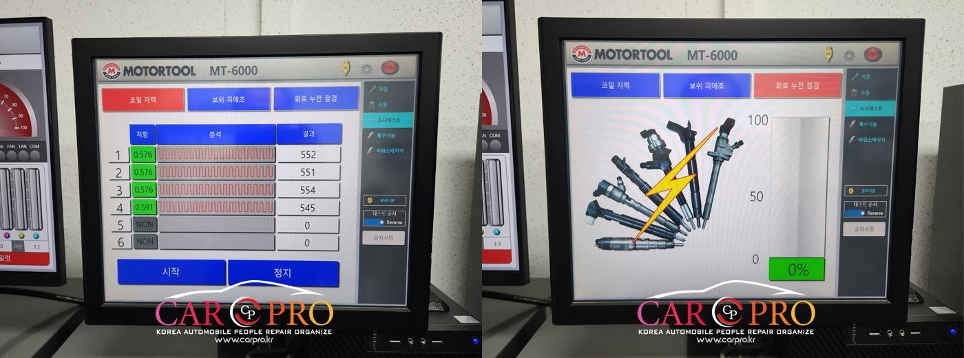 인젝터 크리닝 후 단계별 분사량 테스트를 해줍니다