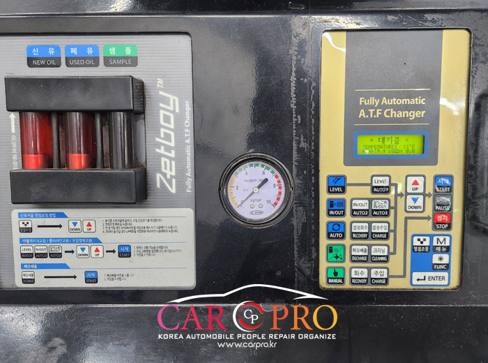 10리터 장비순환식으로 교환 후 가운데 순한되는 미션오일 깔끔하게 교환되었네요~